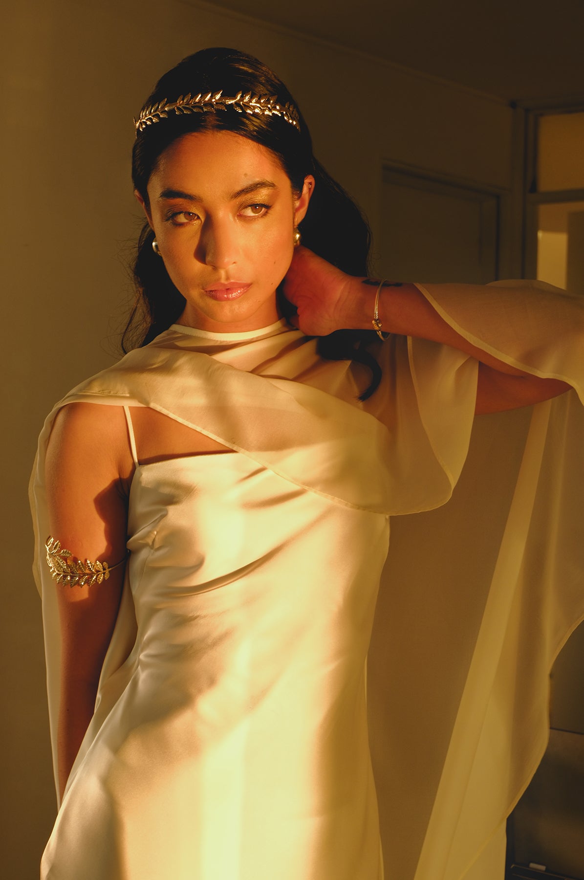Digno de una diosa, de Seda Bucare con forro interno y capa.
